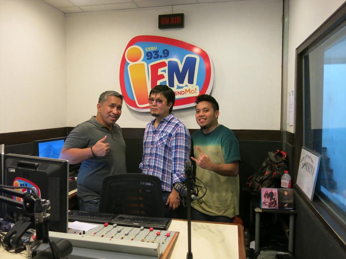 乙三.の楽曲放送した番組終了後93.9iFMにて。左からiFMのマネージャーRaul(ラオル)さん、iwapt、Dj Rob Rider(ディージェイ ロブ・ライダー)。