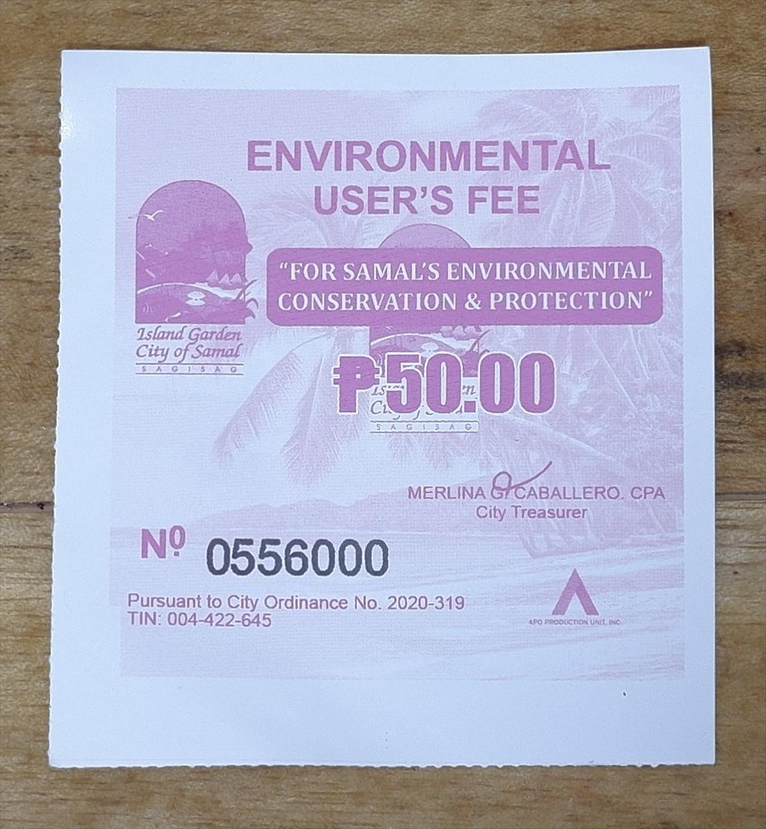 サマル島入場料50ペソ 支払い証明(島内の検問所で提示を求められる)