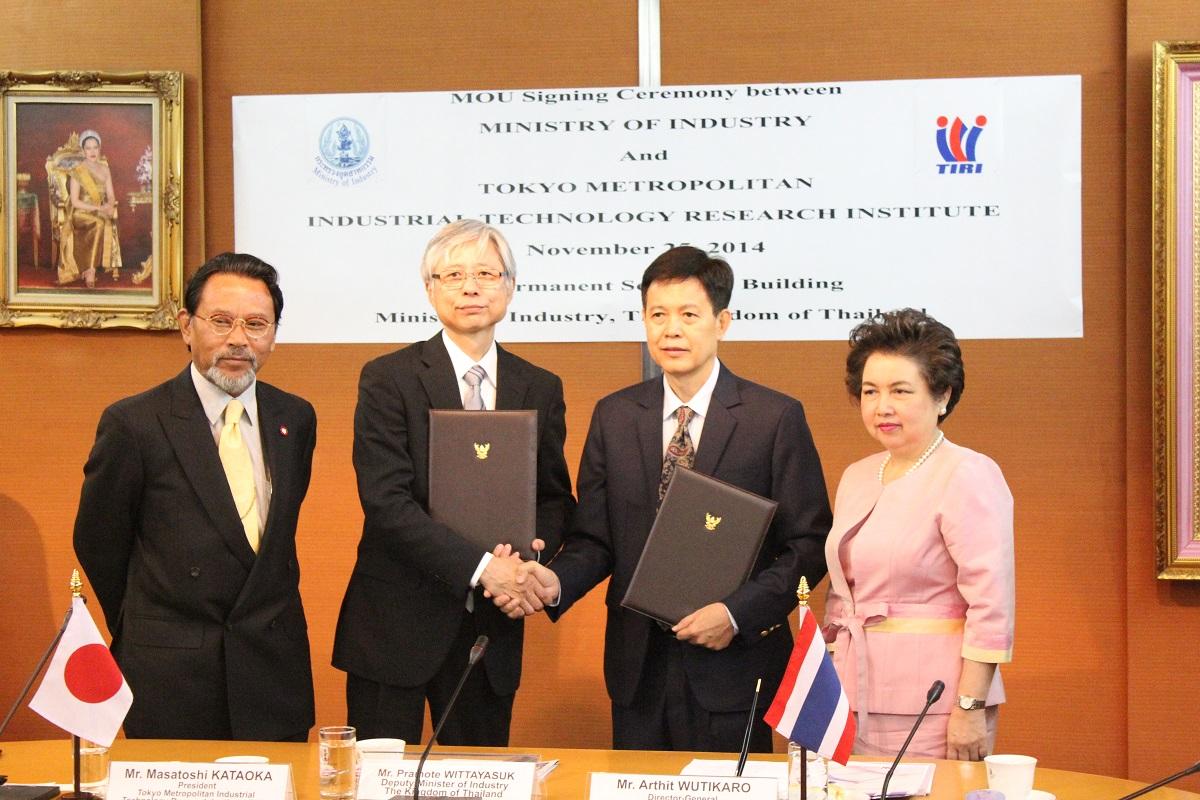 覚書締結式は、2014年年11月25日(火)午前9時から(日本時間11時)。 タイ工業省事務次官棟 大会議室 (Rama6 Rd,Ratchathewi,Bangkok 10400)で行われ、 地方独立行政法人東京都立産業技術研究センター 片岡 正俊 理事長 と、タイ工業省 アティット ウティカロー産業振興局長が調印した。 タイ工業省のプラーモート ウィッタヤースック副大臣と、アチャカー シーブンルアン事務次官が立会った。 (11月27日更新)