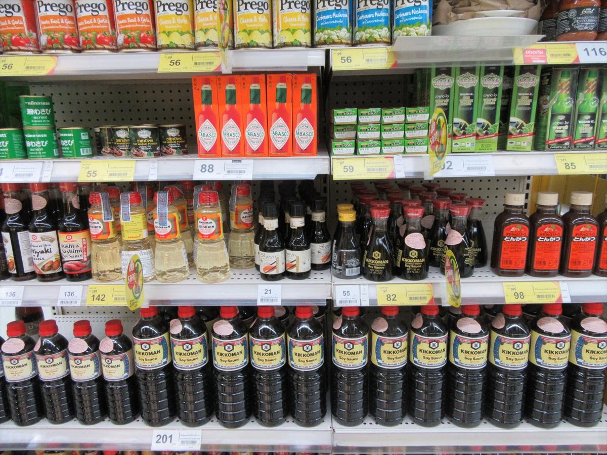 さて、何とか台所は確保できましたが、日本食は台所があるだけでは食べられません。食材探しをしなければなりませんが、バンコクでは、日系のスーパーに行くと日本食の材料に事欠くことはありませんし、それ以外の大型スーパーや百貨店の食品売り場でも容易に手に入れることができます。しかし、タイの地方では、バンコクのような訳にはいきません。日本食の材料を手に入れるのはとても難しいのです。田舎に行くほどその傾向は大きいように思います。