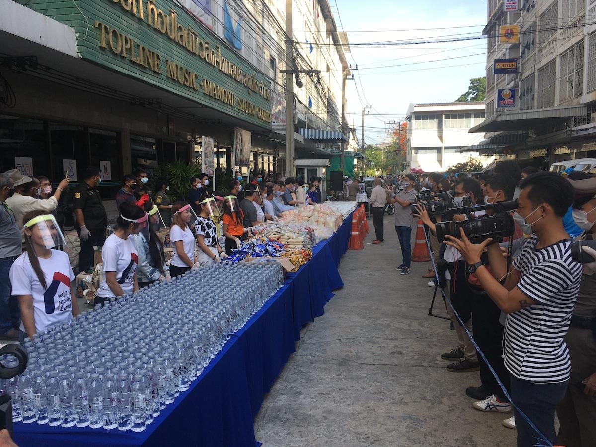 炊き出し支援は、クロンタン警察署とタイの老舗芸能プロダクション、トップライン社が共同で、バンコク都内スクンビット通りBTSプラカノン駅近くの社屋前で行われた。所属する有名歌手らがフェイスガードやマスクをして、集まった周辺住民や駆けつけたファンなど約2,000人以上にお弁当やお米、インスタント食品などの支援品を一人ずつ手渡しした。