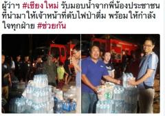 市民たちによって差し入れられた水などを現場の司令所運び入れる人々(SNS掲載写真より)