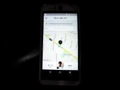 スマートフォンからUBERで配車依頼すると。表示される画面。