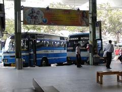 エカマイの東バスターミナルで出発を待つバス。観光地パタヤや工業地域のラヨーン、シーラチャ行きなどが発着している。