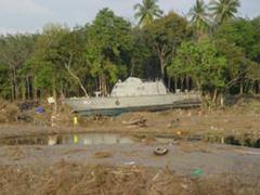 被災直後、津波に流され、内陸部に打ち上げられた813警備艇。
