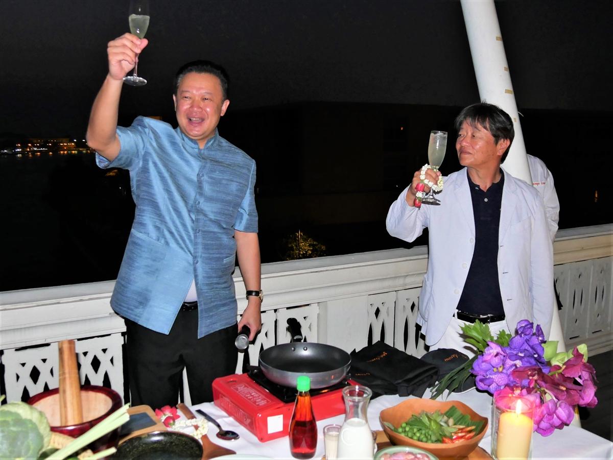 料理教室の会場には、日本で、タイレストラン・マンゴツリーなどを展開するミールワークス小島由夫社長と親交の深い、タイ国政府観光庁ユッタサック・スパソーン総裁もゲストとして登場し、タイ料理の素晴らしさや、新たに始まったミシュランガイド・バンコク版では、多くのタイ料理店が選ばれたことに誇りを感じていることを伝え、豪華なレストランからストリートフードまで幅広い多様性に富んでいる点などについても紹介した。
