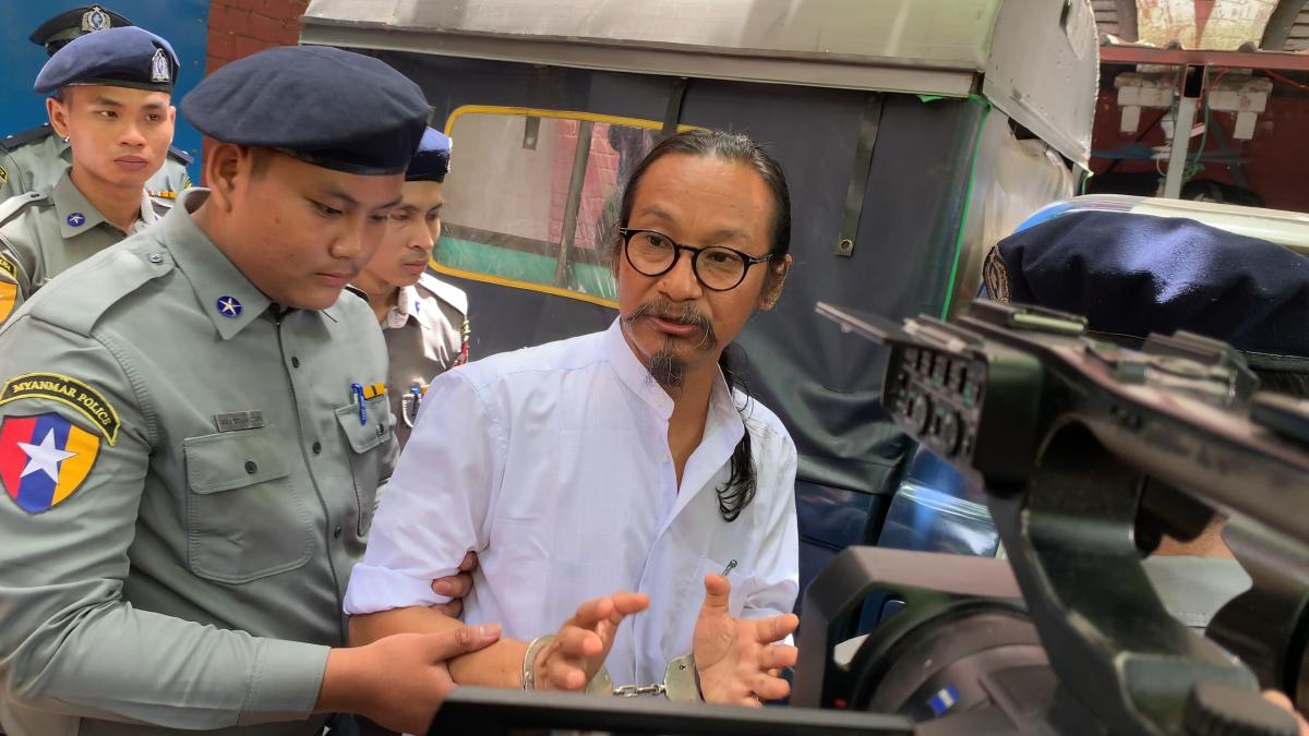 2019年8月、公判後に連行されるミンティンココジー氏(ヤンゴン、撮影:北角裕樹)