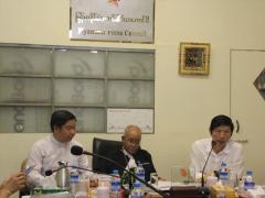3月13日のヤンゴン証券取引所の記者会見(ヤンゴン、撮影:北角裕樹)