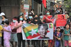 集会禁止のミャンマー 市民は住宅の前で抗議