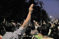 ヤンゴンのレーダン地区で抗議デモを行う市民ら(撮影:リンニャントゥン)