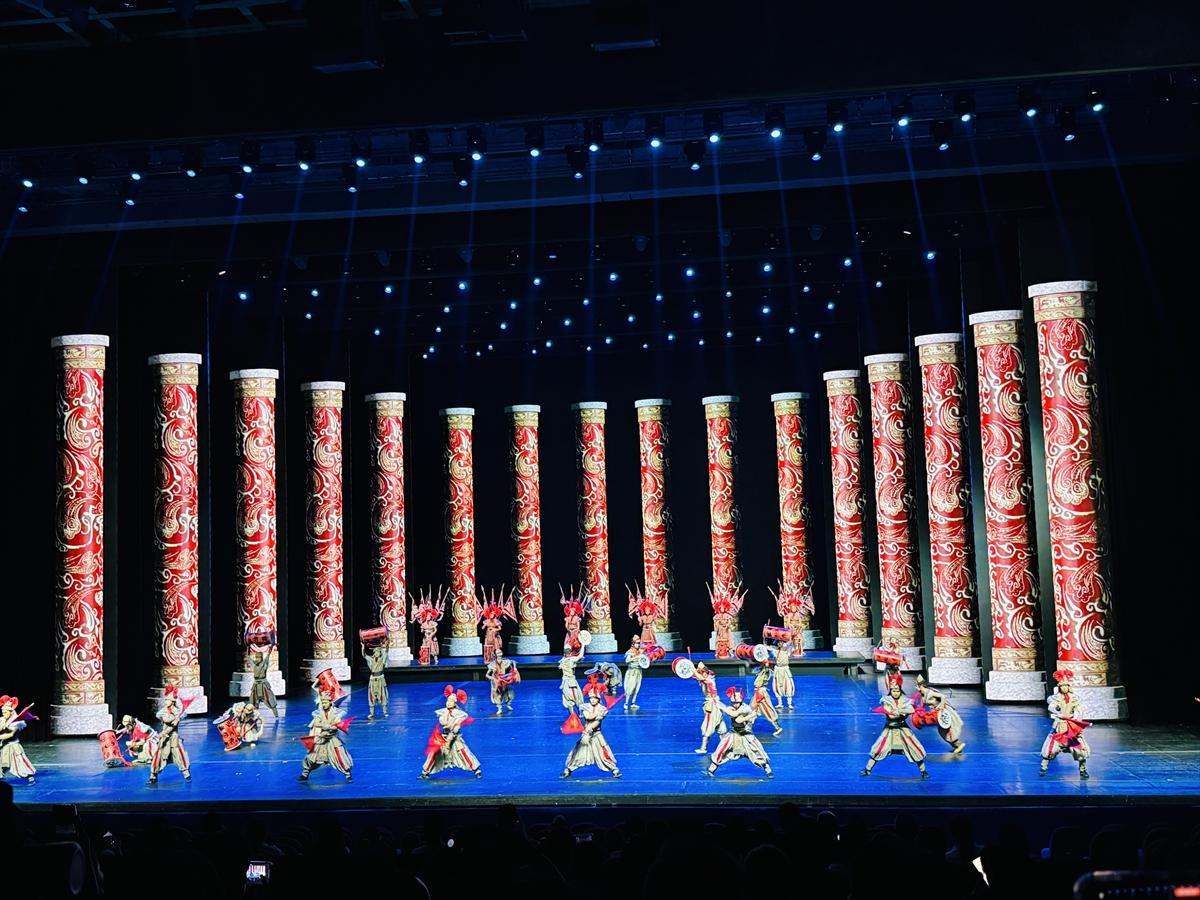 舞台劇・回道張掖での一幕。戦士が甲冑を身に纏って戦うシーンは圧巻