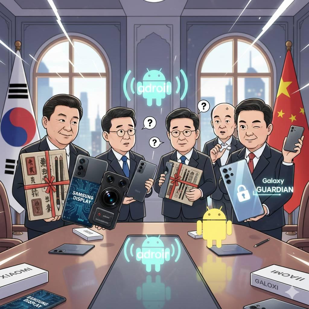 シャオミもいいけど、ギャラクシーもね! 大統領の方の李氏は、周氏に「通信セキュリティーは万全ですか」とかました。