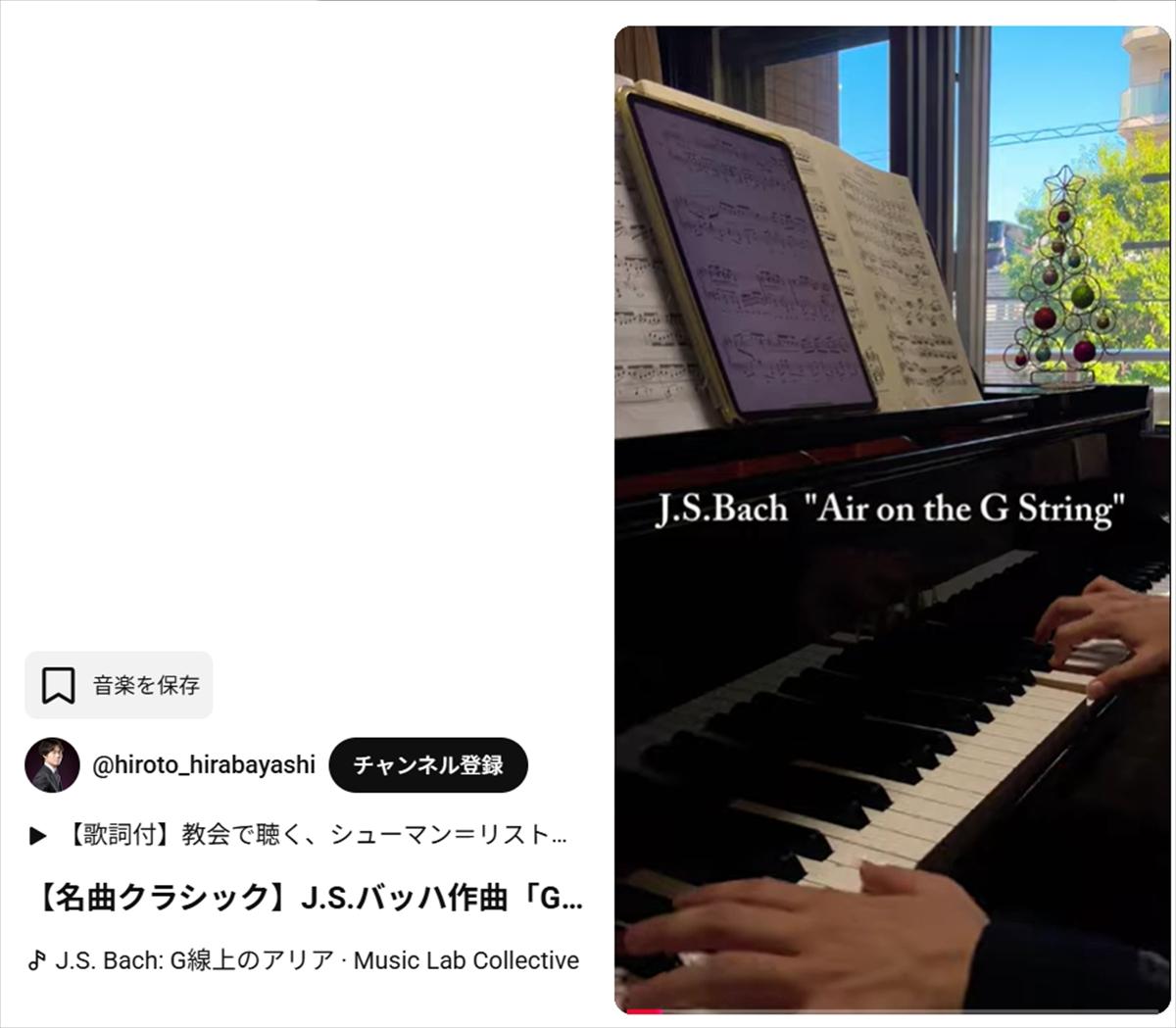 欧州で研鑽を積み、先月11月にフランス・パリから帰国したばかりの音楽家、平林大翔(ひろと)氏(福島県郡山市出身)が12月3日夜、動画投稿サイトYouTubeにバッハの名曲「G線上のアリア」の演奏動画をショート形式で公開した。