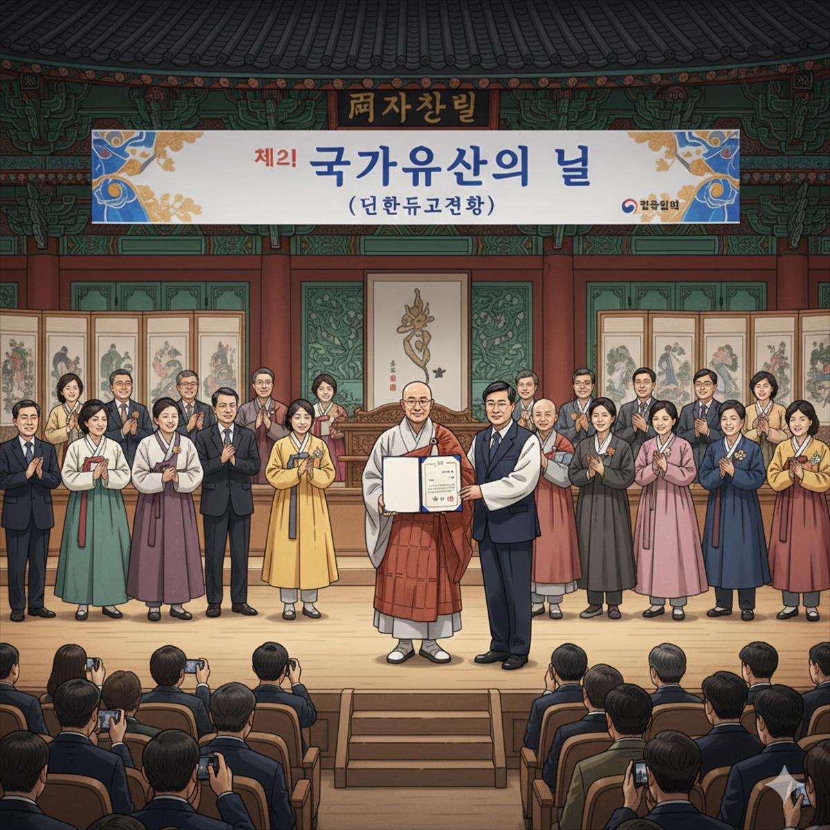 2025年12月9日午後、ソウルの民俗劇場「風流」で「第2回国家遺産の日」記念行事が開かれた。その席で住職は満面の笑みで表彰を受けた。