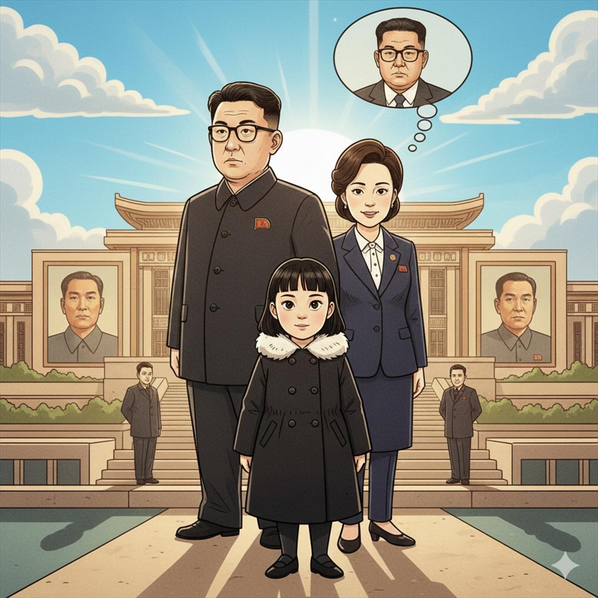 本物か偽物かわからないけれど家族:親子で登場することで、北朝鮮という国は総書記と国民を「親子」、一つの家族とする「社会主義大家庭」を演じましょうと言う啓蒙かもしれない。