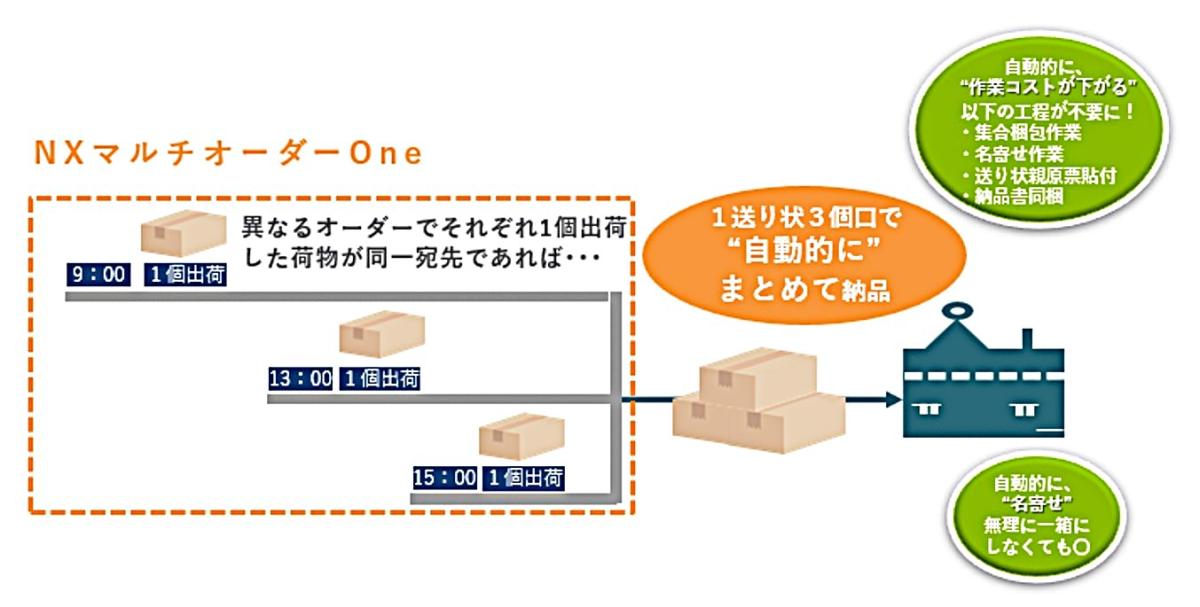 これまでの物流現場では、同一宛先への注文が複数発生した場合、すべての注文が出そろうのを待つ「締め切り待ち」や、荷物を一つにまとめる「集合梱包」などの作業が必要となり、出荷の滞留や作業スペースの圧迫が課題となっていた。新サービスでは、顧客の出荷データをシステム連携させることで、複数のオーダーを自動的に集約する 。これにより、総個数が確定する前でも準備が整った商品から順次出荷できるようになり、現場の作業負担が大幅に軽減される。