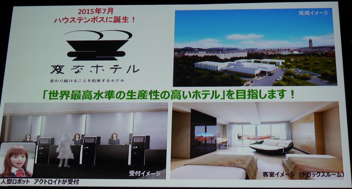 澤田 秀雄氏は、LCCとスマホで、アジアの大航海時代になった。アジア各国から日本を訪れる観光客はドンドン増えて、大阪ではホテルの稼働率が90%と客室が足りない。そこで、ハウステンボス内に今年7月ロボットホテルをオープンする計画がある事を紹介した。