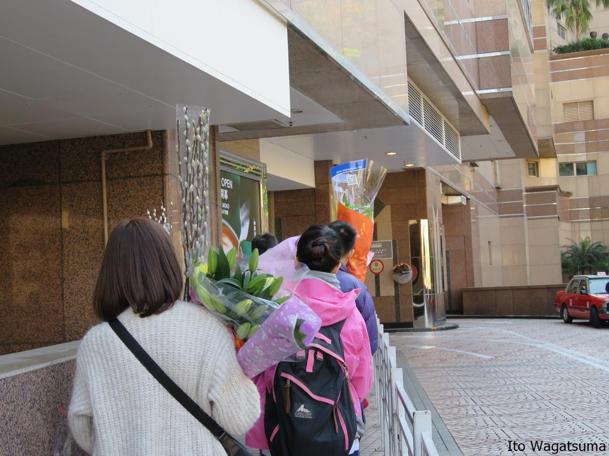 旧正月前に購入した花を持ち歩く女性たち(我妻伊都 撮影)