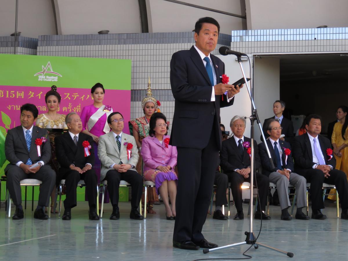 また日本政府を代表して、木原誠二 外務大臣政務官は、「日本とタイの絆が深まり、裾野が広がるためにも、良いフェスティバルだ。昨年は、日本を訪れるタイ人も45万人と前の年に比べ、1.7倍に増えている。今年のフェスティバルが成功するよう祈願します。」などと話した。