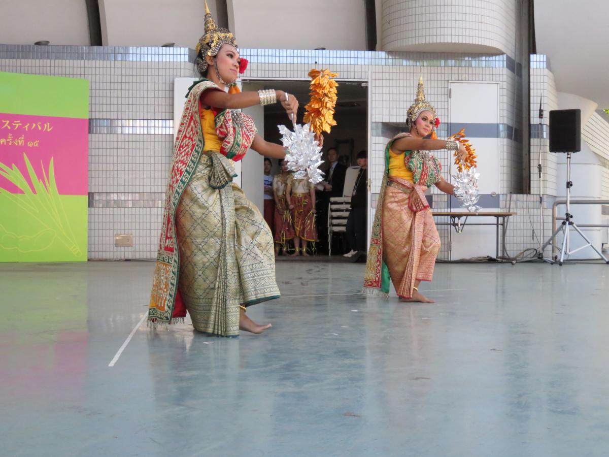 開会式の後ステージでは、タイの伝統舞踊が、ラーチャパット・トンブリー舞踊団によって披露され、観客から大きな拍手を受けた。この舞踊団は、タイでも歴史が古く、芸術性の高い、卓越したレベルを維持する舞踊団。金銀の枝を持った踊りが素晴らしかった。明日も公演する。