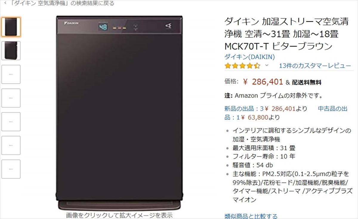 顕著な例として、ダイキンの加湿機能付きの空気清浄機の価格が、新型商品を大きく上回る高値で販売されている。TCK55M-Wは、369,075円、他の通販サイトでは、27,980円+送料980円で、価格差は約12.7倍。また、MCK70T-T 286,401円。MCK40N-W 336,324円と高値で販売。最新型のMCK70Vは、49,800円と適正価格で販売されている。この他にも旧型商品が高値で販売されるケースが散見される。購入リスクの高いサイトだと言える。