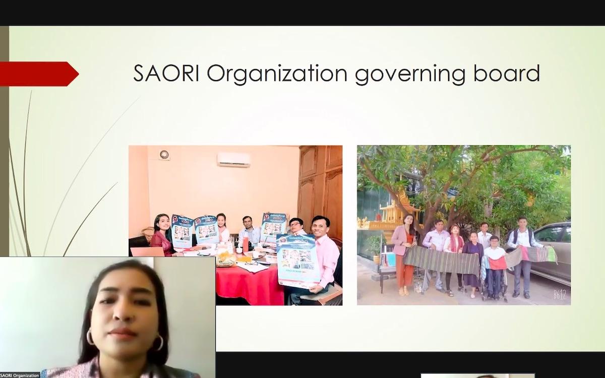 そして、日本発祥のアートワーク「さをり織」を題材に「さをり織の社会における意義」をテーマにした発表がフィリピン、カンボジア、日本から行われ、参加できなかった台湾の実情について司会者が説明を行った。「さをり織」は、NPO法人さをりひろばが、1970年から障がい者らの就労支援や、災害被災者の心のケアなどの活動を、日本を含む約50ヵ国で行なっている。