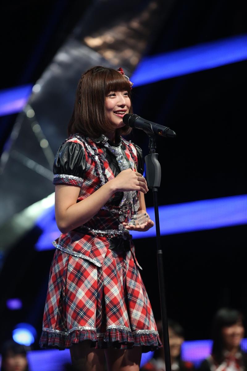 ファンのみなさん、JKT48の選抜総選挙に参加して、選んでいただきありがとうございます。これはJKT48のためにファンのみなさんが決めてくれたとっても大事なことです。去年1位になった時には、将来、私以外にも同じ経験をしてもらいたかったです。