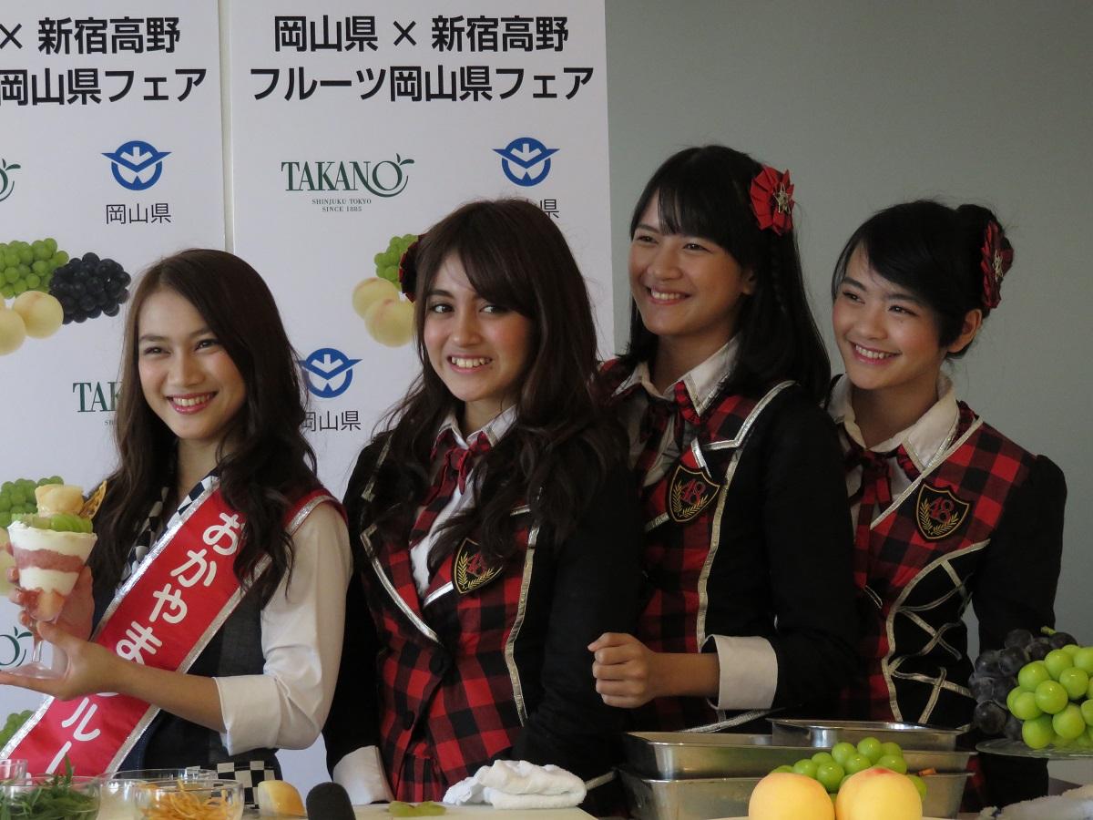 2014年7月11日、岡山県の高品質な果物を中心とした宣伝・販売のアンバサダーとして、「おかやまフルーツ大使」に就任した、JKT48キャプテンのメロディーは、タカノフルーツパーラーの森山登美男氏の指導で、パフェ作りに挑戦した。