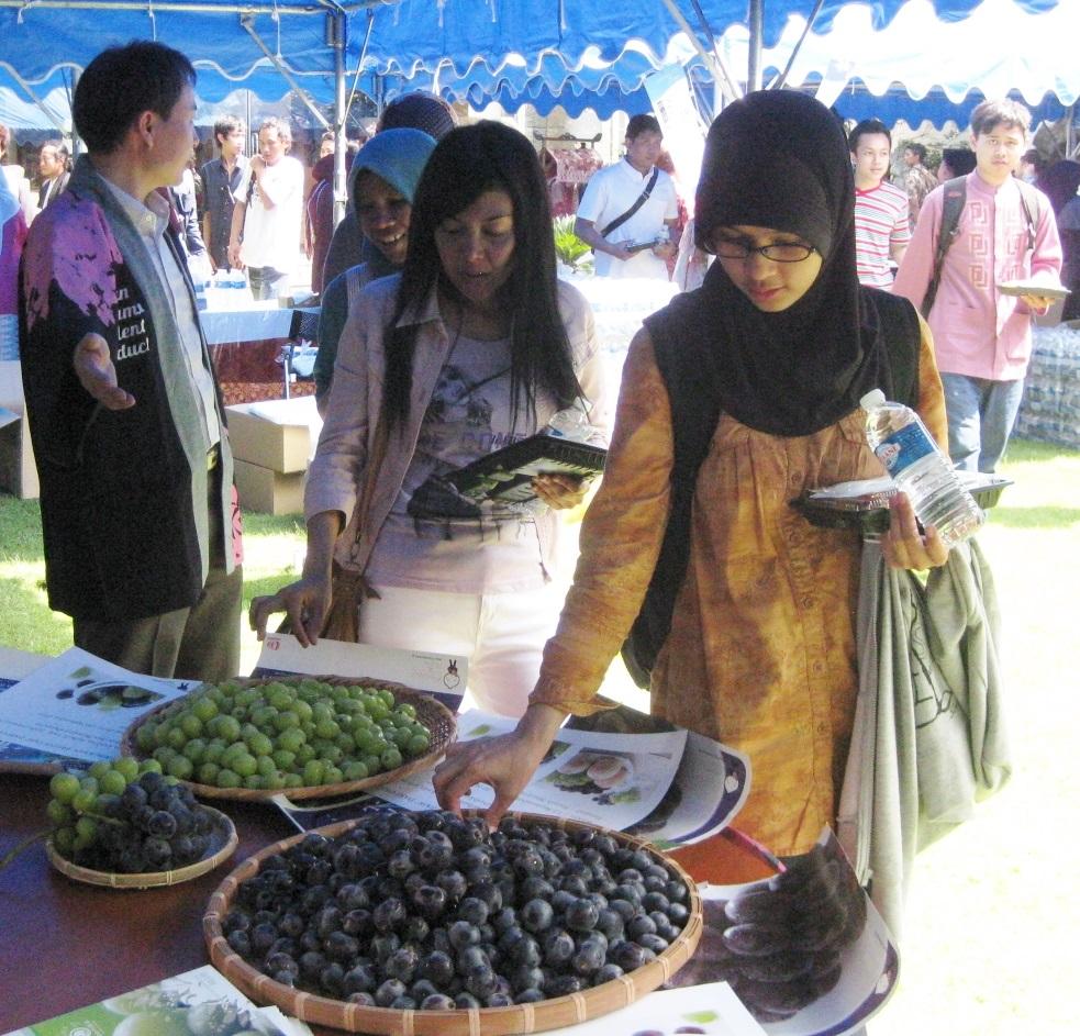 岡山県産のブドウ約100房(シャインマスカットとピオーネ)を、試食用に提供したところ、「こんなに大きい粒のブドウを初めて見た。」「本当に美味しい。インドネシアでも販売しているなら、詳しく教えてほしい。」と言ったものから、「今日ここで買って帰りたいが、販売はしていないのか。」「東京であれば、どこでいくらくらいで買えるのか。」と大評判だった。