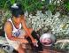 ビーチからバンガーボートで約10分沖合の無人島でのバーベキュー。新鮮な鶏をその場で捌き、薪でじっくり焼き上げる。さらに、豚肉やイカもグリルで香ばしく調理され、漂う香りが食欲をそそった。