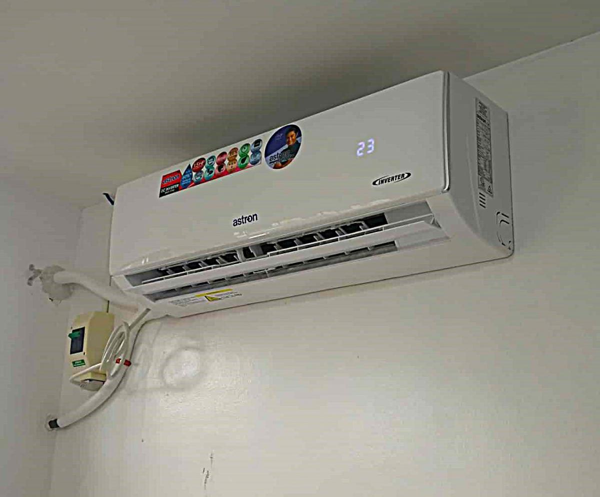 以前は、窓に取り付ける一体型のエアコンが主流だったが、これは設置が簡単である反面、消費電力が大きく、騒音や振動の問題を抱えていた。今回設置された「Astron 1.5HP Inverter Split-Type」のようなインバーター式は、室外機と室内機が分離しており、低騒音・低振動を実現している。また、必要に応じて冷房能力を調整するため、一体型に比べて大幅な省エネが可能だ。