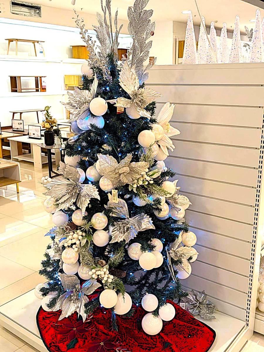 ダバオ市内の大型商業施設(家具店)では、店頭の一角が鮮やかなクリスマスの装飾品で埋め尽くされている。ひときわ目を引くのは、雪をまとったかのようなフロッキー加工の「スノー・ツリー」や、濃い緑色の伝統的なツリーなど、サイズも色も異なる様々な人工ツリー群だ。