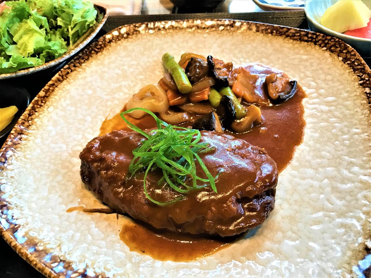 日本食レストラン「おがわ」の和牛のミンチを使ったハンバーグ。