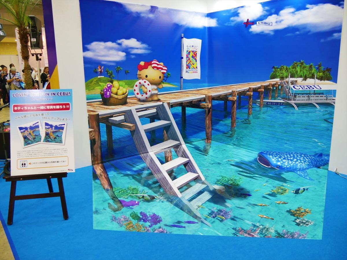 今回、ゴールドスポンサーとして出展するフィリピンのテーマは『もっと楽しいフィリピン〜魅惑のビーチ体験! フィリピンの夏の海! 〜』来場者に参加を呼び掛ける、ボホール名物「ターシャを探せ」では、ブース内の全てのターシャを見つけて、キーワードを記入、正解者にはドリンク券と航空券の当たる抽選券をプレゼント。Mabuhay Bar (ドリンクバー)を新設、フィリピンのオリジナルカクテルやシェイクが楽しめる。フォトコンテストを実施・豪華なプレゼントを準備中。ブースを周るアイスクリームカート・スタッフからのクイズに正解すると、フィリピンアイスをプレゼント。フィリピンヒロット体験コーナーや、VR体験コーナー(フィリピンの海や雄大な自然)など、盛りだくさんの内容。