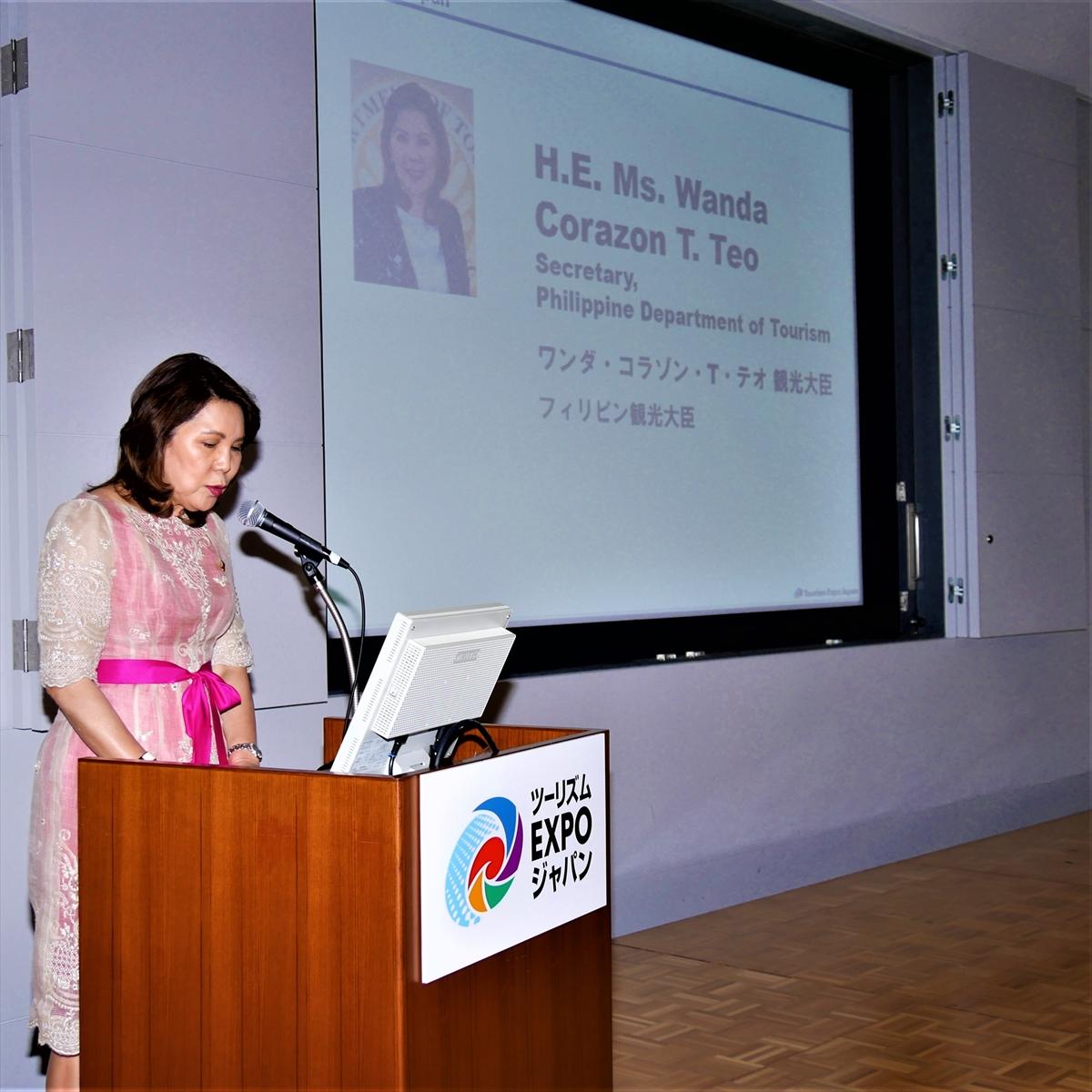平和と国際理解の促進を呼びかけ、ワンダ・テオ フィリピン観光大臣ーツーリズムEXPO