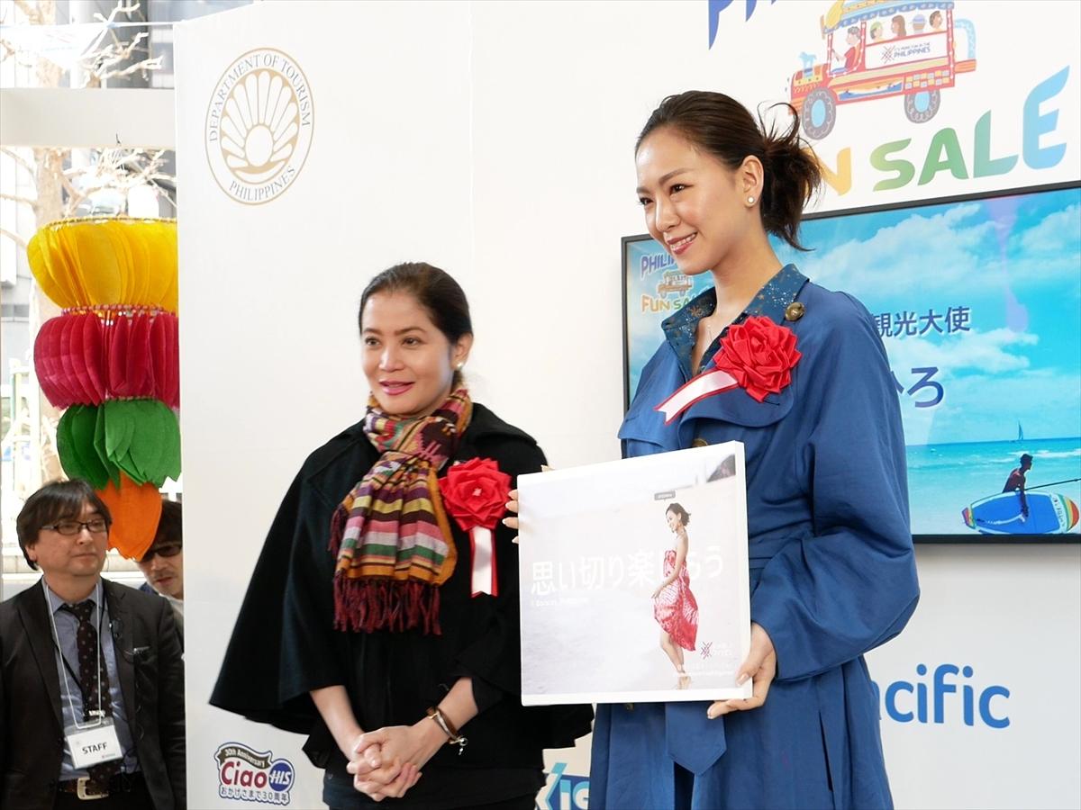 フィリピン観光親善大使 西内ひろさん(右)、ベルナデット・ロムロ・プヤット(Bernardette Romulo-Puyat)フィリピン観光大臣(左)2019年3月15日、MODI 渋谷・1Fモディ広場で撮影)