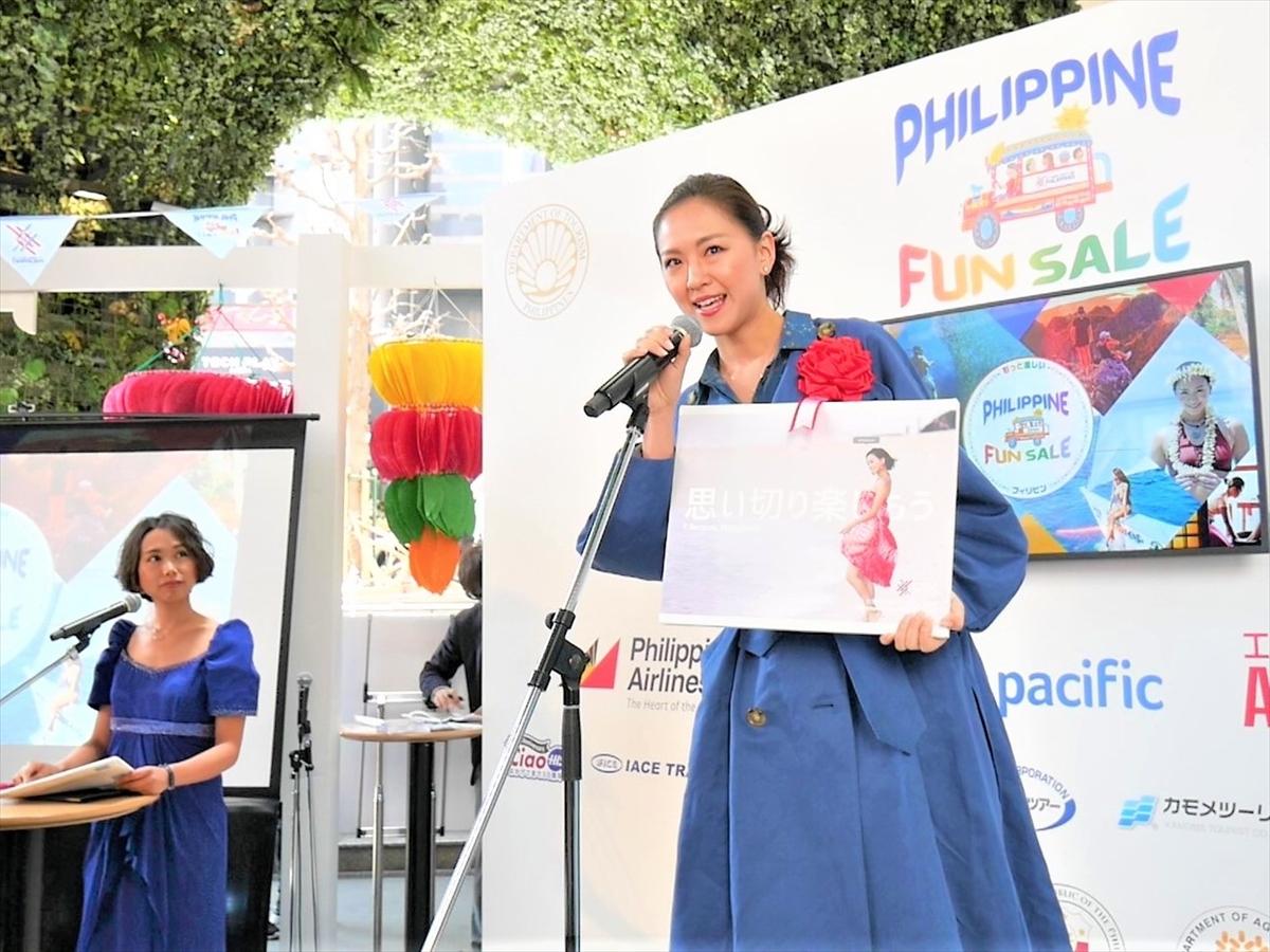 西内ひろ フィリピン観光親善大使は「観光大使に選んでいただいた昨年6月から、毎月の様にフィリピンを訪れPR動画などの撮影をさせていただいています。1月にはセブマラソンにも参加しました。たくさんのフィリピンの方々と交流させていただきました。フィリピンはパワースポットだと思います。たくさんの大自然があって凄くパワーが貰える場所。これからもドンドンフィリピンをPRしていきます」と挨拶した。