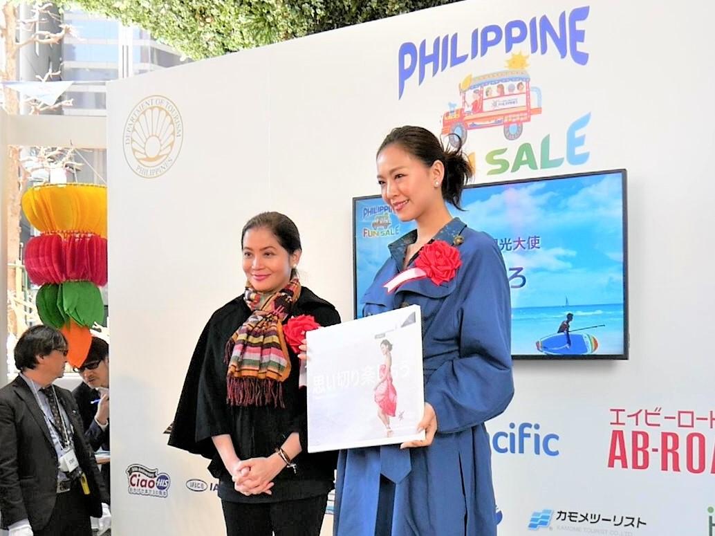 3月15日、MODI 渋谷モディ広場で “フィリピン ファン セール”キックオフセレモニーには、フィリピン観光親善大使の西内ひろ さんも出席し「観光大使に選んでいただいた昨年6月から、毎月の様にフィリピンを訪れPR動画などの撮影をさせていただいています。1月にはセブマラソンにも参加しました。たくさんのフィリピンの方々と交流させていただきました。フィリピンはパワースポットだと思います。たくさんの大自然があって凄くパワーが貰える場所。これからもドンドンフィリピンをPRしていきます」と挨拶した。
