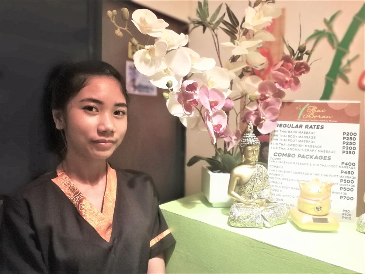 この店は、良心的な価格体系で、タイ式マッサージ1時間とオイルマッサージ1時間のセットで500ペソ(約1,100円)長期滞在の外国人にも人気が高い。