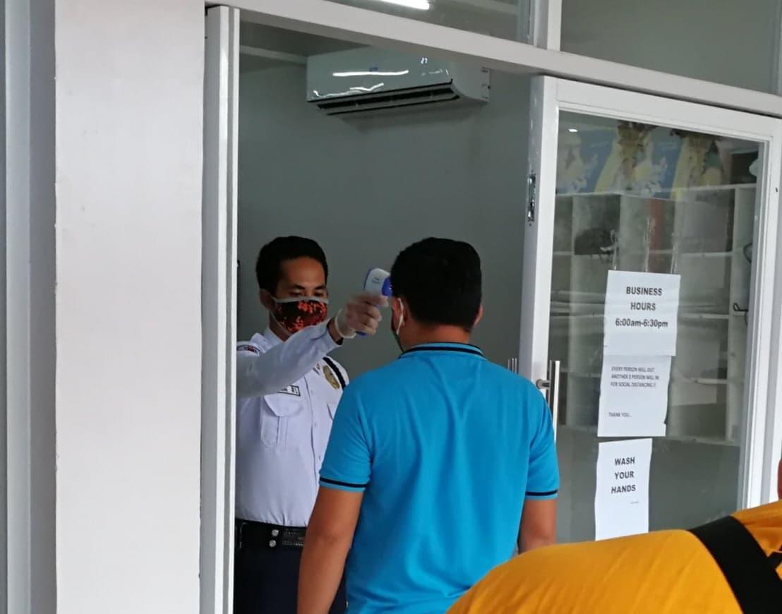 スーパーの入り口では必ず検温(2020年4月19日午後撮影)