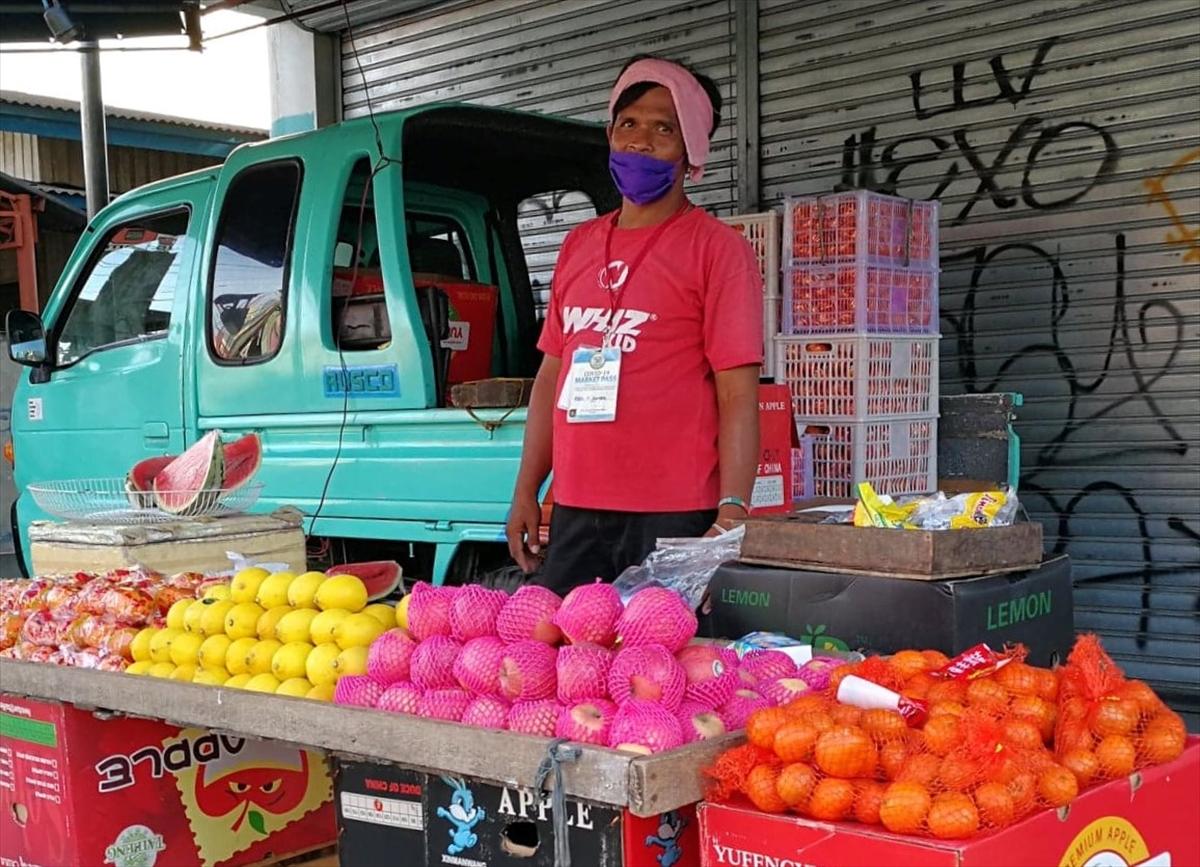 フィリピンでは日給制で働いている人が多く、この地域の最低賃金は386ペソ。働けない日の賃金保証は無く収入は途絶える。シャッターが下ろされた店舗の前では、仕事を失った人たちが、果物や野菜などを売る露店を出すことが多くなった。