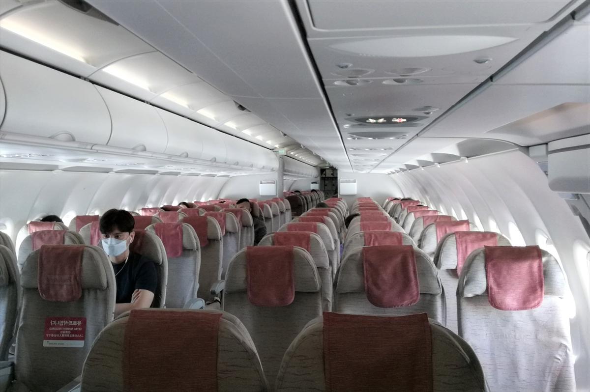 2020年6月10日、朝9時ソウル発成田行きのアシアナ航空の搭乗口では、再び体温測定が行われ機内に案内された。160人乗りのエアバスA321機材に乗客はわずか43人。エコノミークラス後方席は特に空席が目立った。離陸前に日本入国時の新型コロナウィルスの為の健康申告用紙と税関申告用紙が配られた。機内サービスは通常と同じ。緊迫感はエアアジア・フィリピンに比べると10%ぐらいだった。