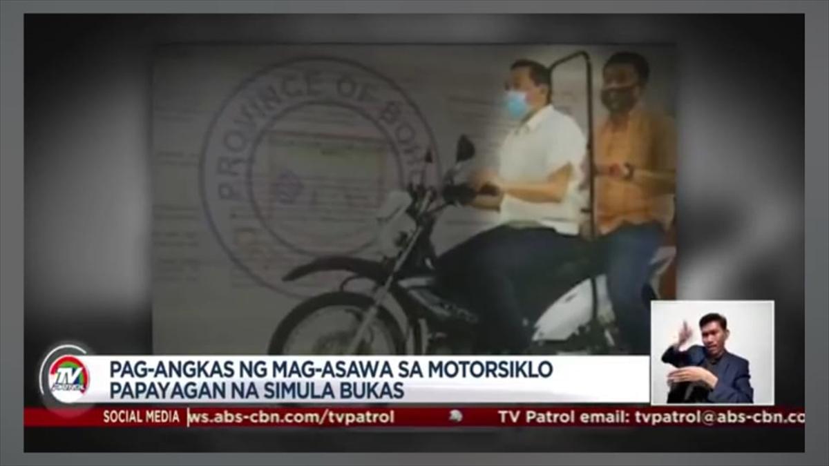 2人乗りバイクには、前部座席と後部座席の間に、衝立を取り付ける 乗車のイメージ(ABS-CBNから)