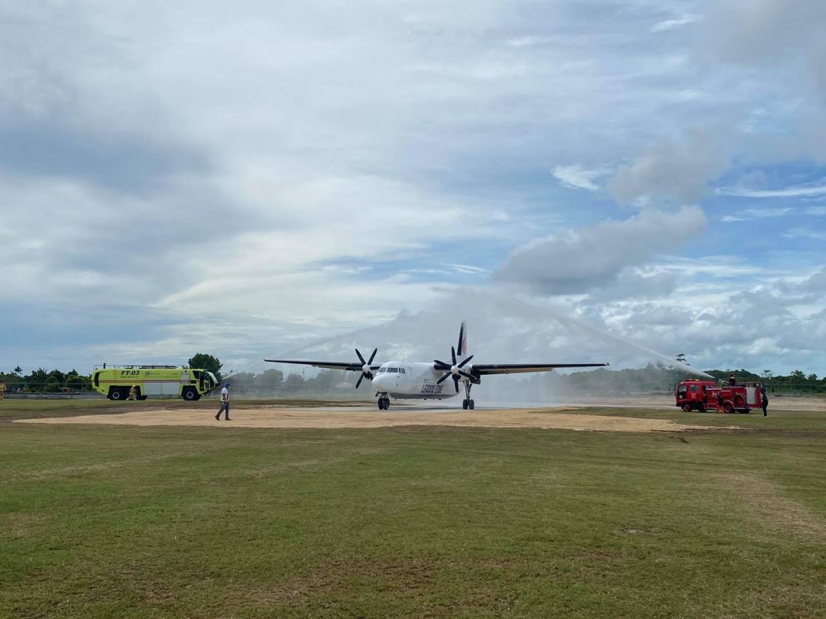 マクタン・セブ空港からプロペラ機で約20分(飛行時間)。オープンした空港の滑走路は1200メートル。運航会社はAir Juan。当面、利用者の状況を見て週2往復程度の運航を目指す。