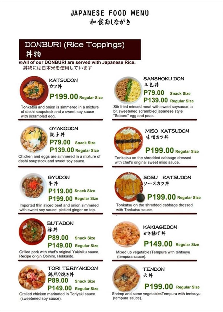 日本食メニューが豊富で、テイクアウトやデリバリーにも対応している。リーズナブルな価格で提供される日本食は、日本人マネージャ―管理の元、10年以上日本食レストランで経験を積んだフィリピン人シェフが腕お振るう確かな味。配達地域はラプラプ市、マンダウエ市、セブ市(配達料金は利用者負担)