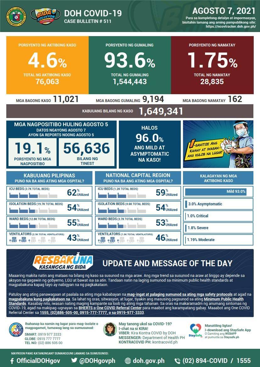 2021年8月7日、フィリピン・保健省(DOH)の発表によると、新たに新型コロナに感染した人は、11,021人で、4月17日以降、最も多い人数になった。
