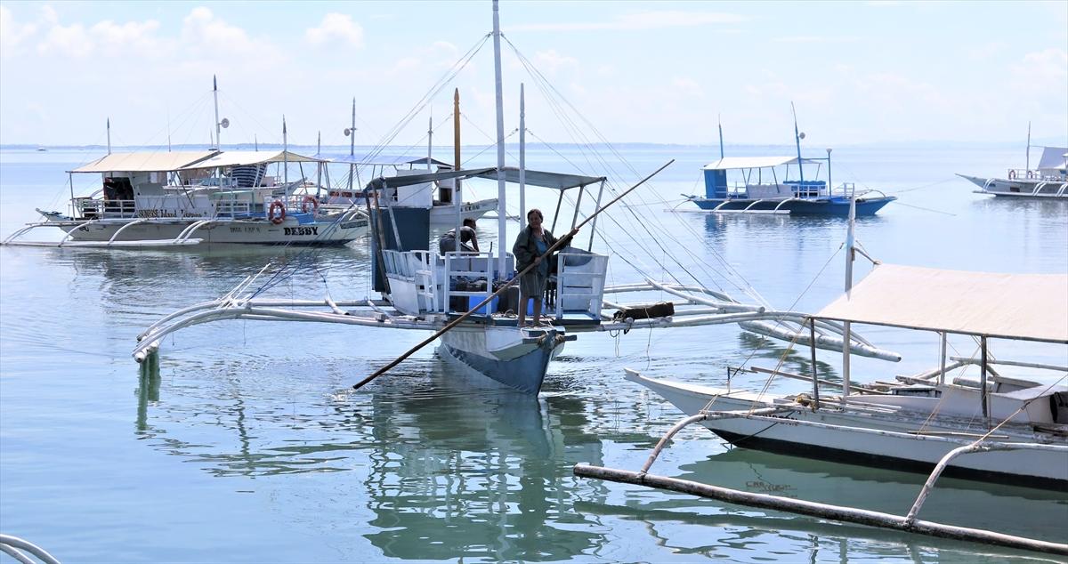 2021年10月16日、フィリピン・マクタン島にあるコルドバ港近くのロロ桟橋。約50隻のバンカーボードが繋留されていた。新型コロナ感染防止の理由で、昨年3月20日から、通常フライトとしての日本からの直行便の運航が停止されている。1ヵ月に1~2回特別臨時便は運航されているが、一般観光客の旅行は禁止されている。