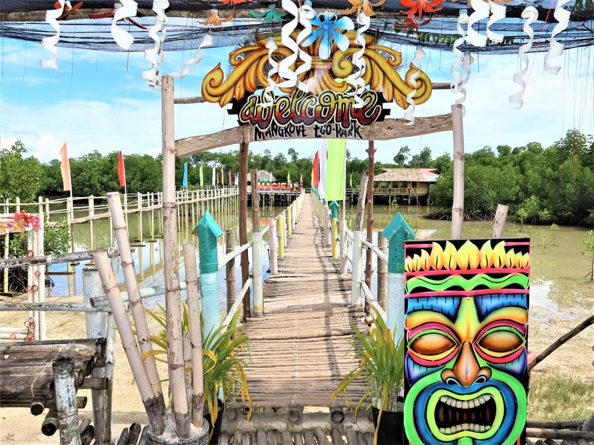 遺跡(石灰岩の崖)からの眺望は圧巻。一番の見どころは、マングローブエコパークだ。グループ旅行者が多く訪れている。マングローブ林を遊歩道で一周、日陰は少し涼しく感じらる。海面には小魚の群れも。バンタヤン島の自然の豊かさを感じられた。