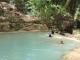 最近道路の拡張工事が完了し、滝の手前約500メートルまで車で行けるようになった。そこからは、陽気なバイクタクシーを利用して下るのが便利(降車時に、「左から」とマフラーに脚が触れないよう日本語で注意喚起してくれる)。マイナスイオン・滝つぼ浴を楽しむ人も多い、その下にも天然プールがあり子どもらが泳いでいた。水温は少し低め。