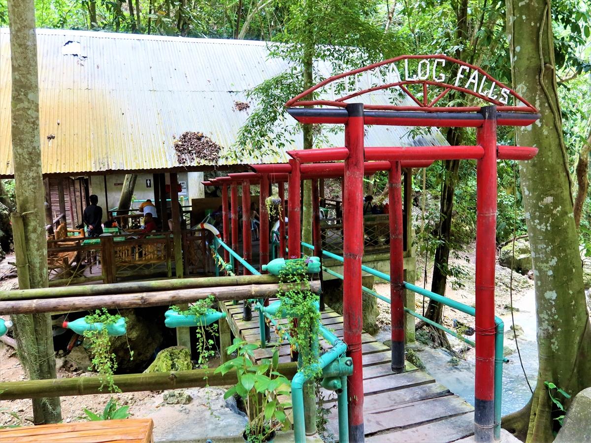 神社の鳥居風ゲートのレストラン・ツマログの滝「TUMALOG FALLS」2022年5月6日